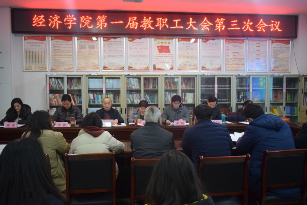 12月23日下午,经济学院第一届教职工大会第三次会议在学院会议室召开。院领导、院工会委员、教代会执委在主席台就坐,全体教职工出席会议。院工会主席周宗超主持会议。