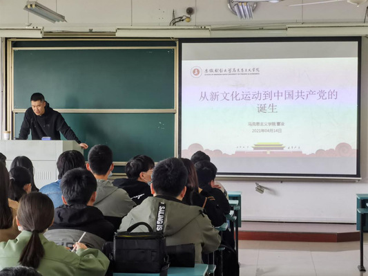 4月14日下午,我院在龙湖东校区明德楼505教室开展学党史主题宣讲活动,马克思主义学院曹凌老师受邀为我院学生党员和入党积极分子作“从新文化运动到中国共产党的诞生”党史主题宣讲。