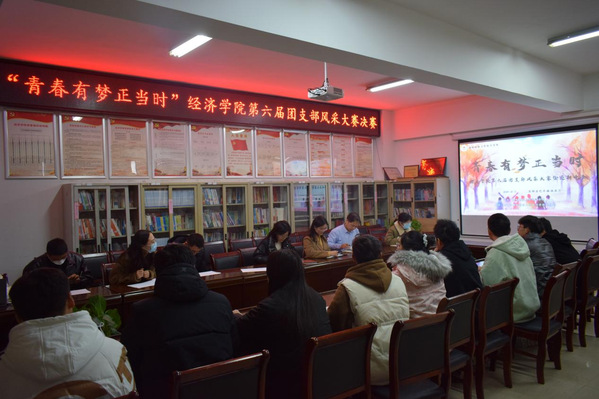12月16日下午,我院在二号行政楼201会议室举办第六届团支部风采大赛决赛。我院党委副书记周宗超、团委书记宁倩倩、团委副书记胡波、专职辅导员余金红、曹延姗、陈思宇、王中原以及各班学生代表出席会议。