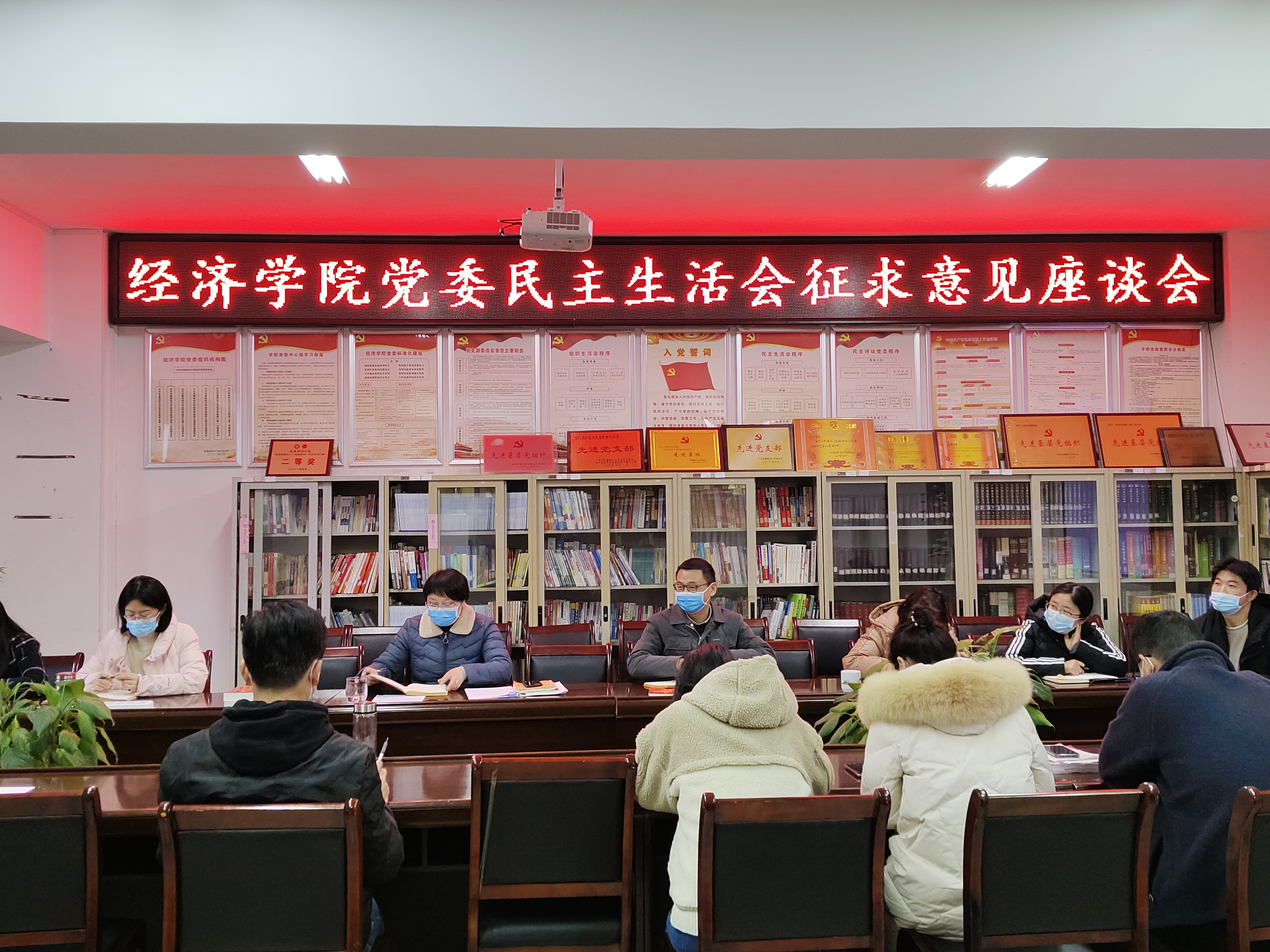 为高质量开好2022年度经济学院党员领导干部民主生活会,广泛听取师生对院党委和院领导班子的意见建议,1月12日下午,经济学院党委召开民主生活会前征求意见座谈会,会议由学院党委书记夏光兰同志主持,学院领导班子、各党支部书记、教职工代表等参加了座谈。