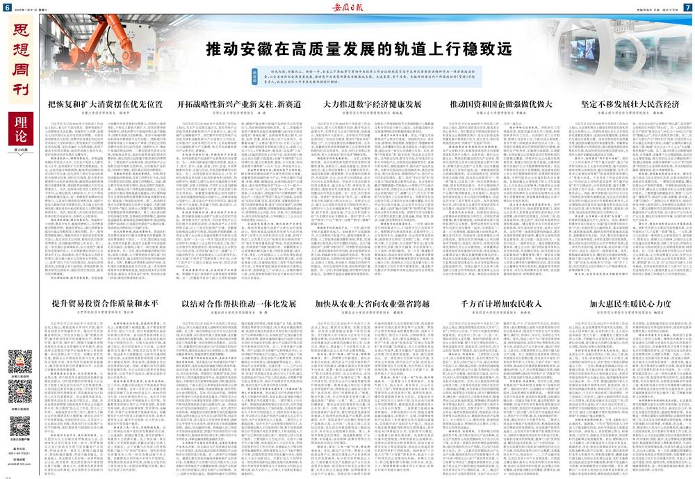 2023年1月31日《安徽日报》思想周刊理论版以“编者按”的形式发表了我院副院长李强教授的理论文章《以结对合作帮扶推动一体化发展》,文章就我省经济工作重要发展举措进行解读。